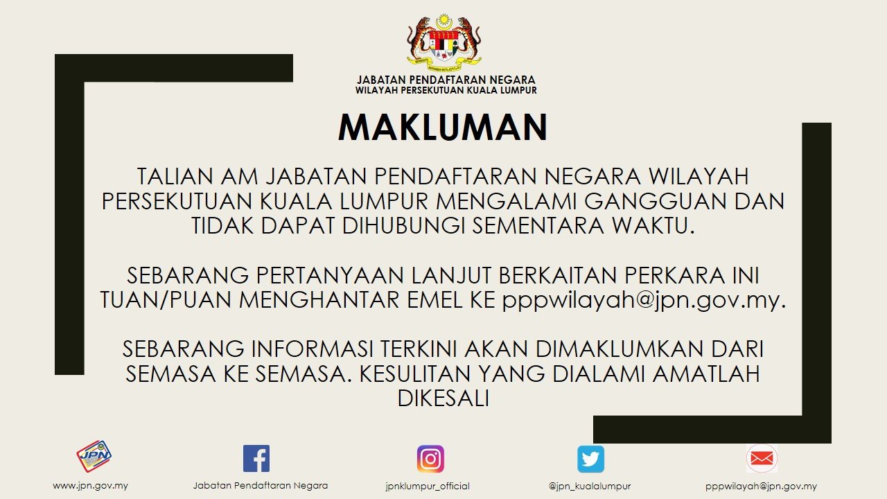 Jpn Wilayah Persekutuan Kuala Lumpur On Twitter Hebahan Gangguan Talian Telefon Jpn Kualalumpur Jpnm Official Kpjpnm Jasrikasim Erisjemadi Https T Co 6iogfudjvi Twitter